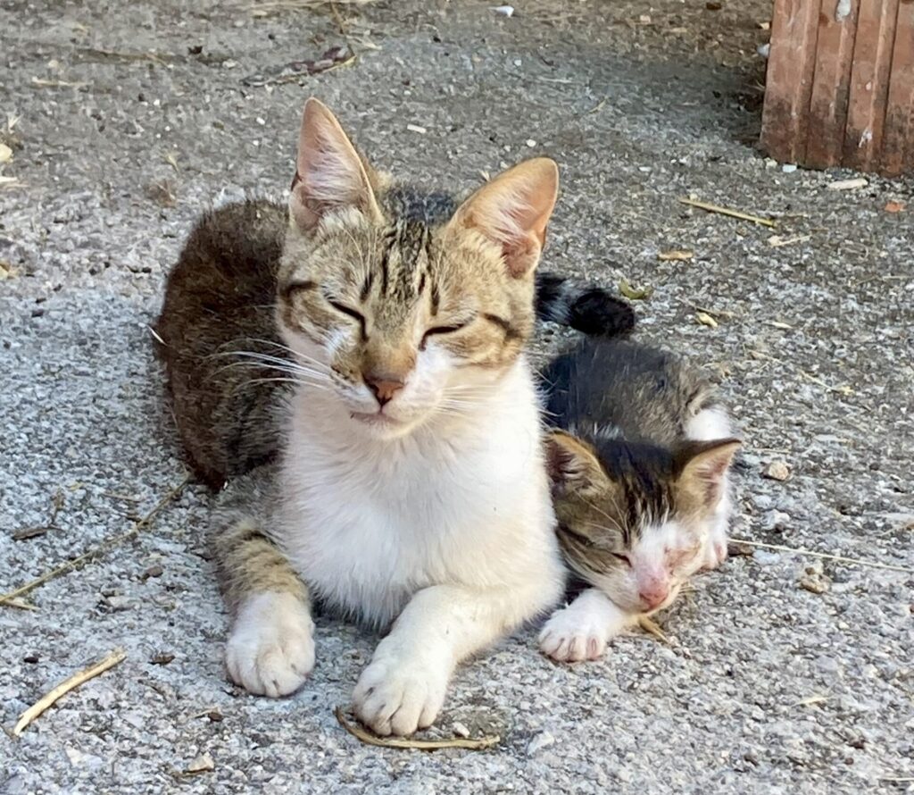 Es war wundervoll zu beobachten, wie die drei – Vinko, Baccaro und Brave – Freunde wurden, wie sie in der Morgensonne herzlich erfrischend Fangen spielten und tagsüber im Schatten kuschelten. Vinko und Brave sahen wie Geschwister aus und Vroni ähnlich. Woher Baccaro stammt blieb uns ein Rätsel. War Vroni auch die Mama von Brave? Womöglich hat Brewy Brave aufgenommen, weil Vroni sie ablehnte? Kaum nachzuvollziehen, doch es ist wie es ist. Hauptsache es ging ihnen besser. Es war WUNDERvoll sehen zu dürfen, wie wir den Dreien das Leben lebenswerter machen durften, wohl anders als ihr Schicksal sonst ihren Lauf hätte nehmen können. Ihre Mütter ließen wir zwischenzeitlich kastrieren, denn sonst ginge das Leid weiter, immer weiter …